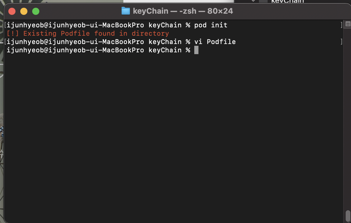 pod 'SwiftKeychainWrapper' 입력하고 저장한 뒤,