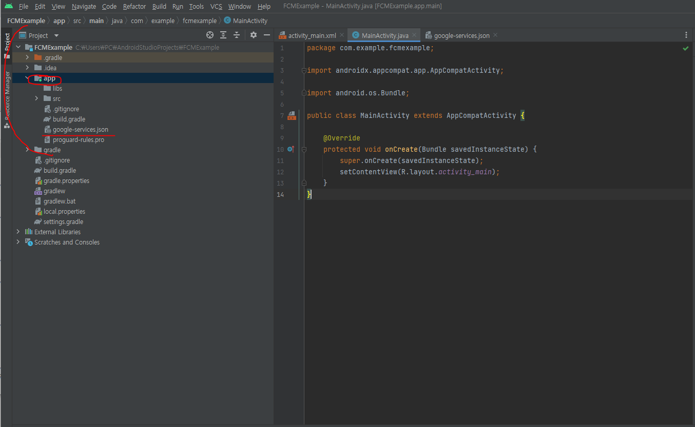 13. app폴더 안에다가 다운받은 google-services.json 파일을 넣어줍니다.