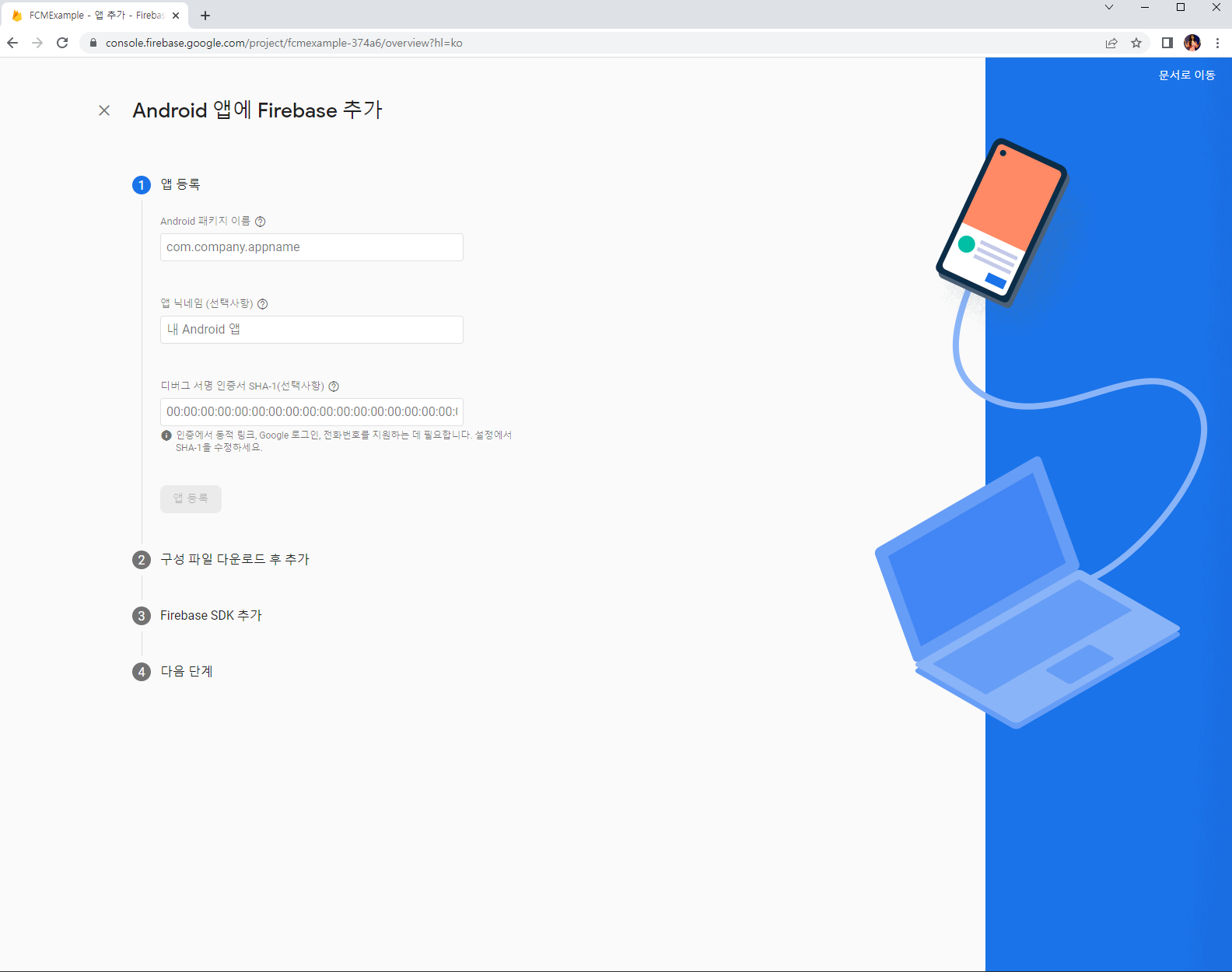 11. 그러면 파이어베이스에서 입력하라고 하는건 끝입니다. 다음으로 넘어가면 google-services.json 파일을 추가해줘야합니다.