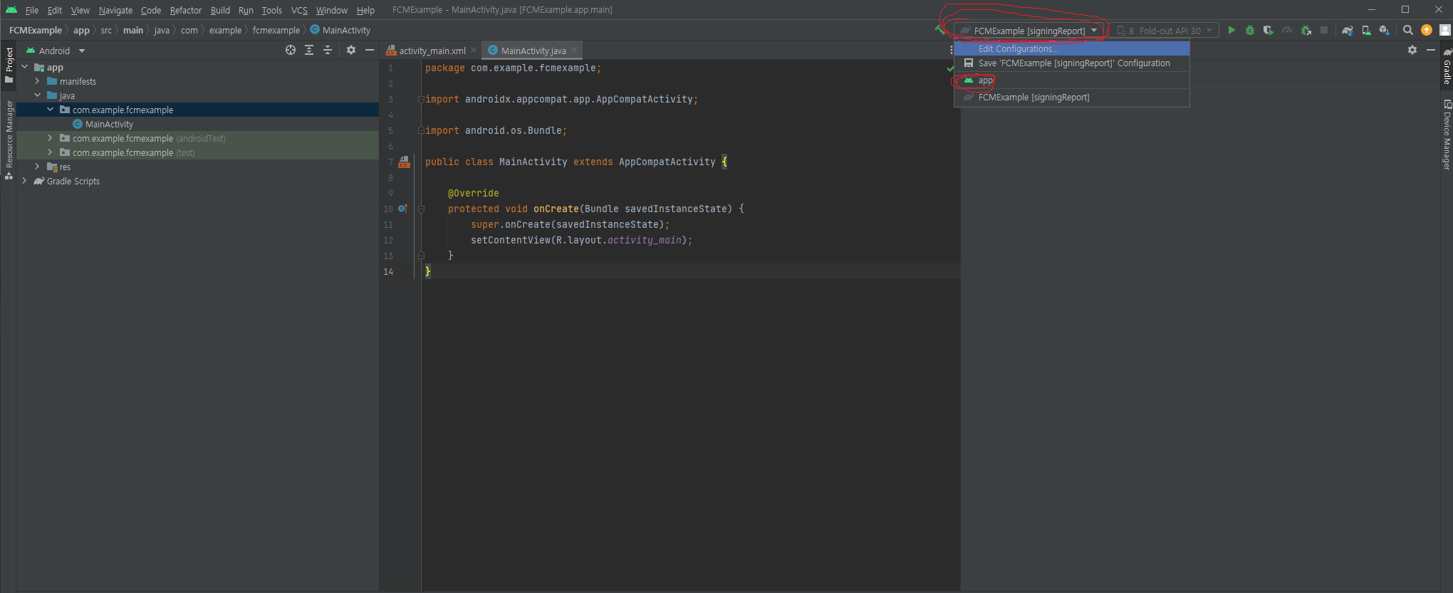 10. 그리고 사진상에 signingReport 로 변해있는걸 다시 app 으로 변경해주세요.