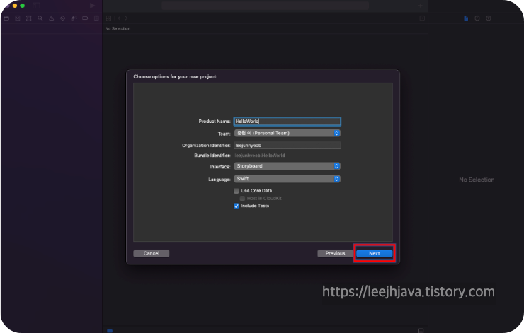 2. IOS App을 제작할것이기 때문에 ios, App 선택 후 Next