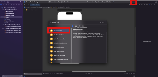 1. Main 스토리보드에서 우측 + 버튼을 통해 새로운 viewController를 생성해줍니다. (드래그 앤 드롭으로 생성)