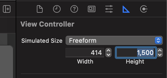 11. 그리고 viewContorllerScene을 누르셔서 우측 시뮬레이티드 사이즈를 fixed되어있는걸 freeForm 으로 변경하시고 height을 원하는 길이 만큼 설정해 줍니다.