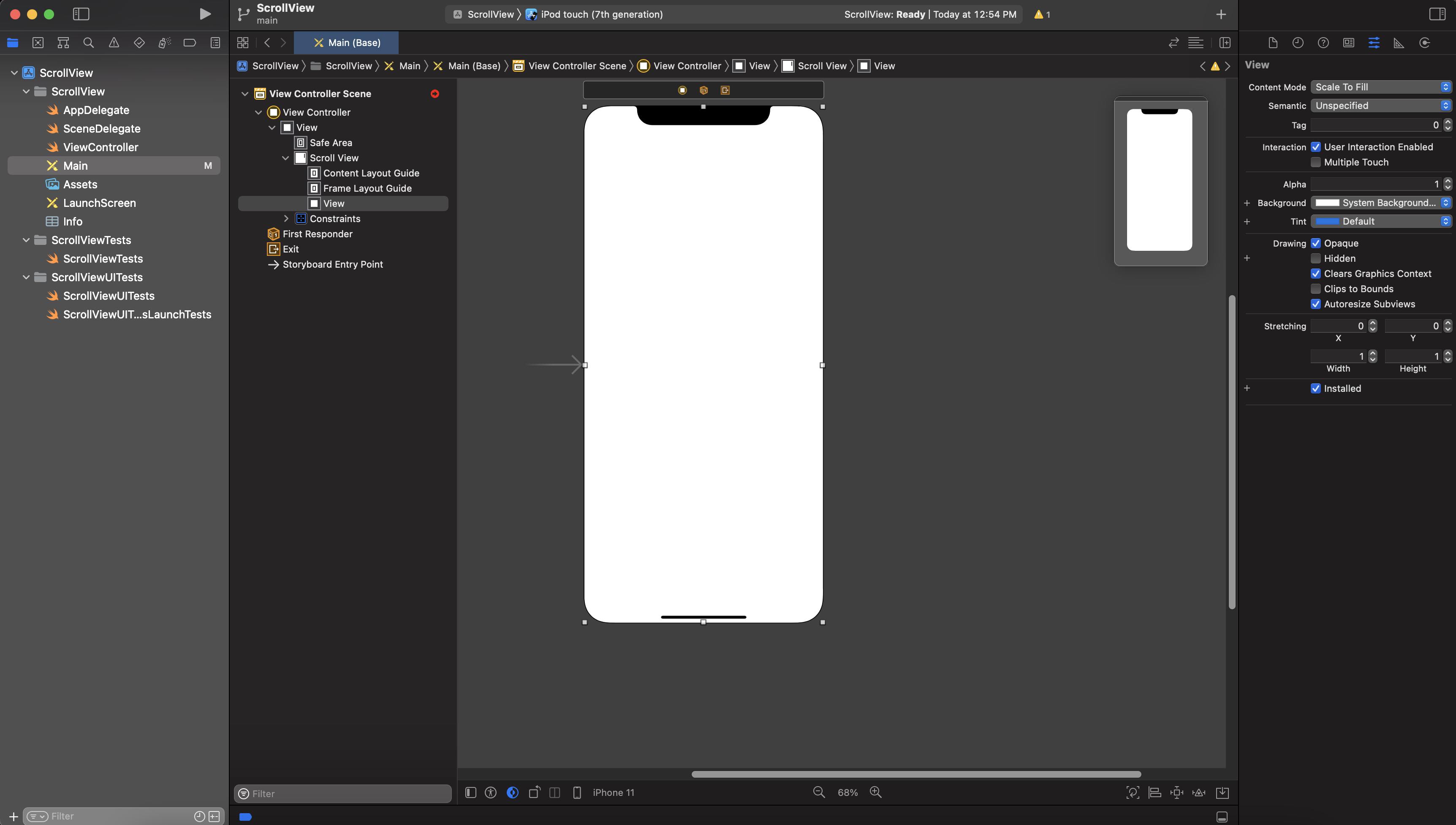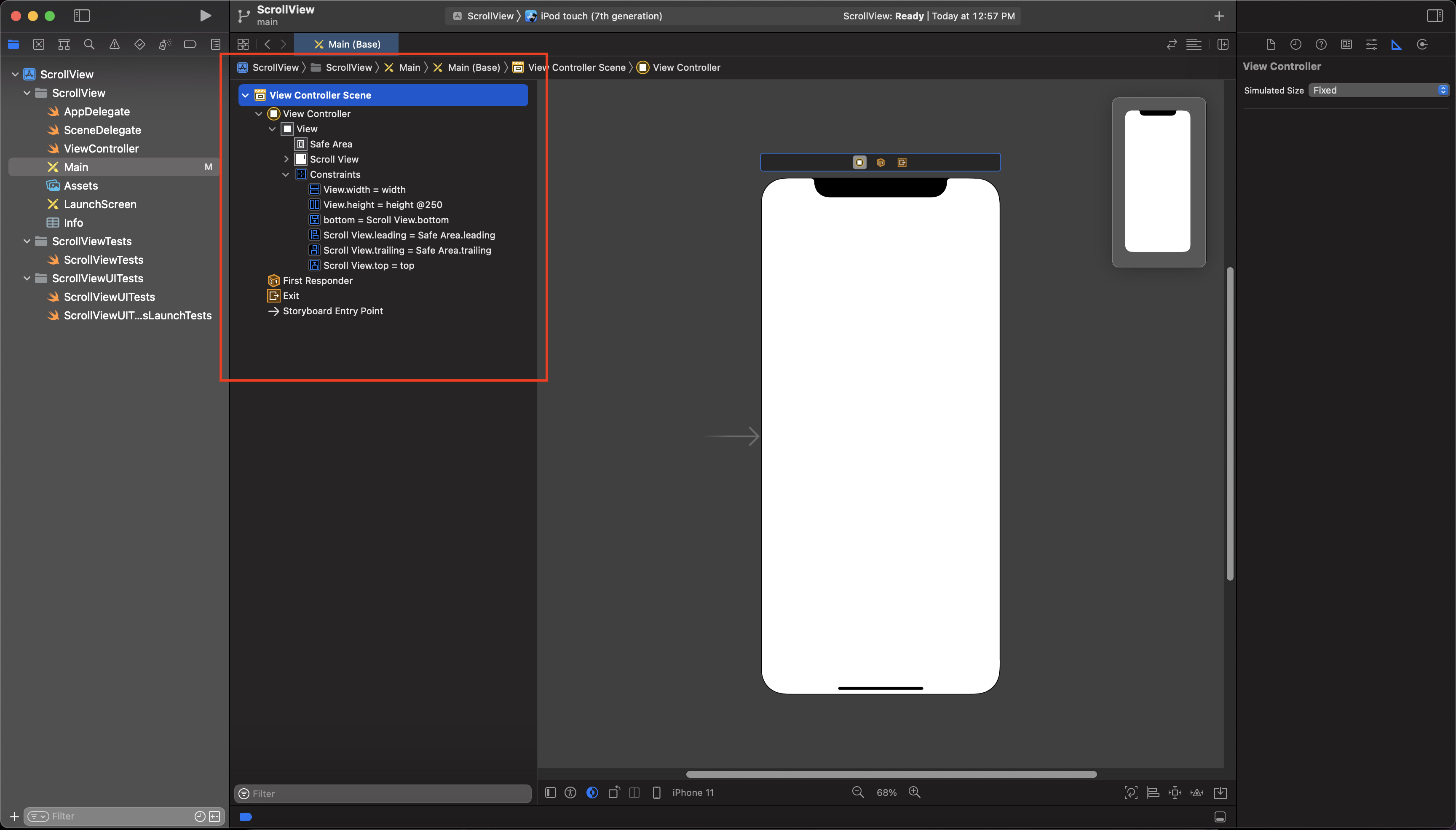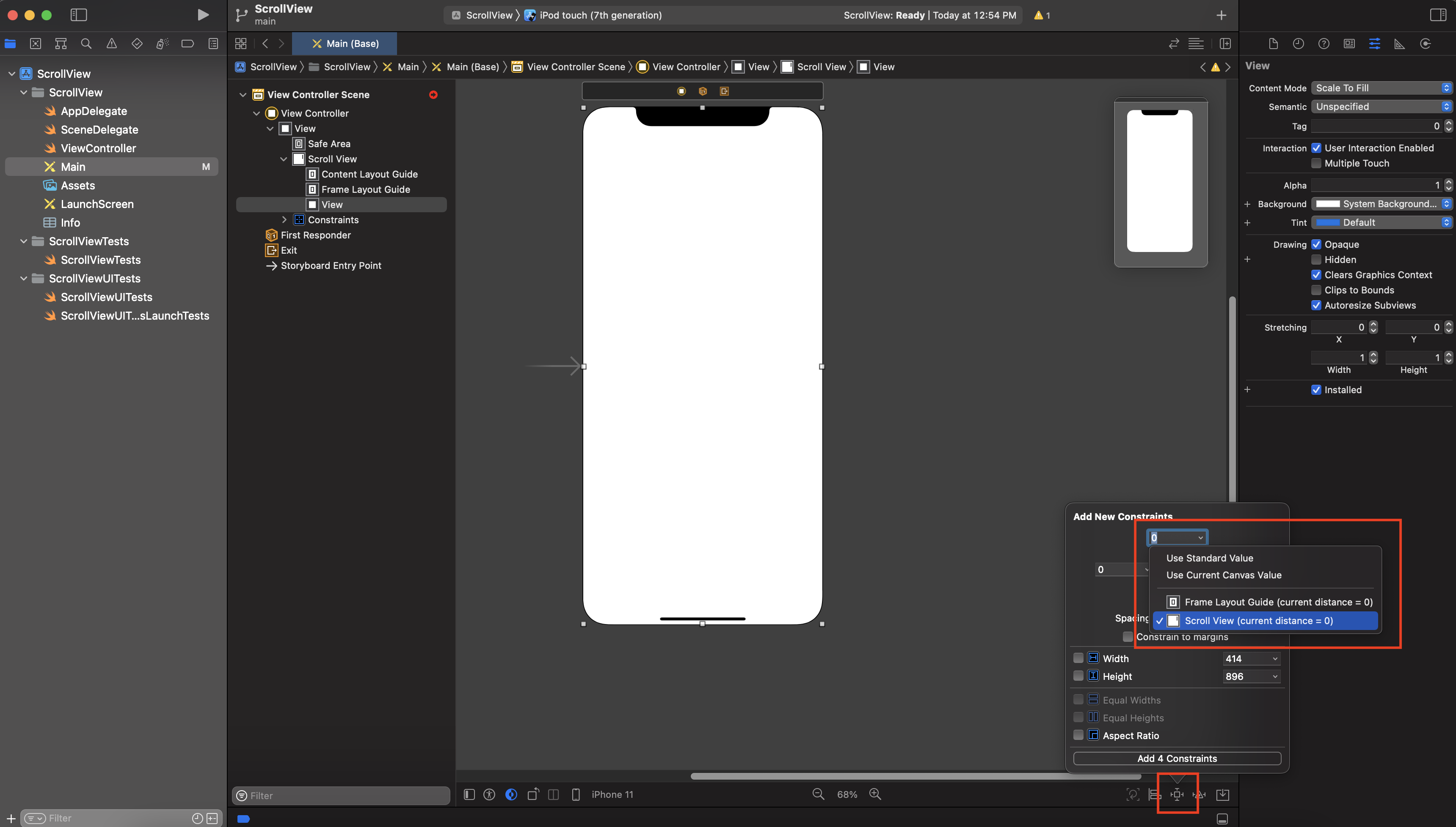 6. 생성한 view는 ScrollView와 크기를 맞춰주세요.