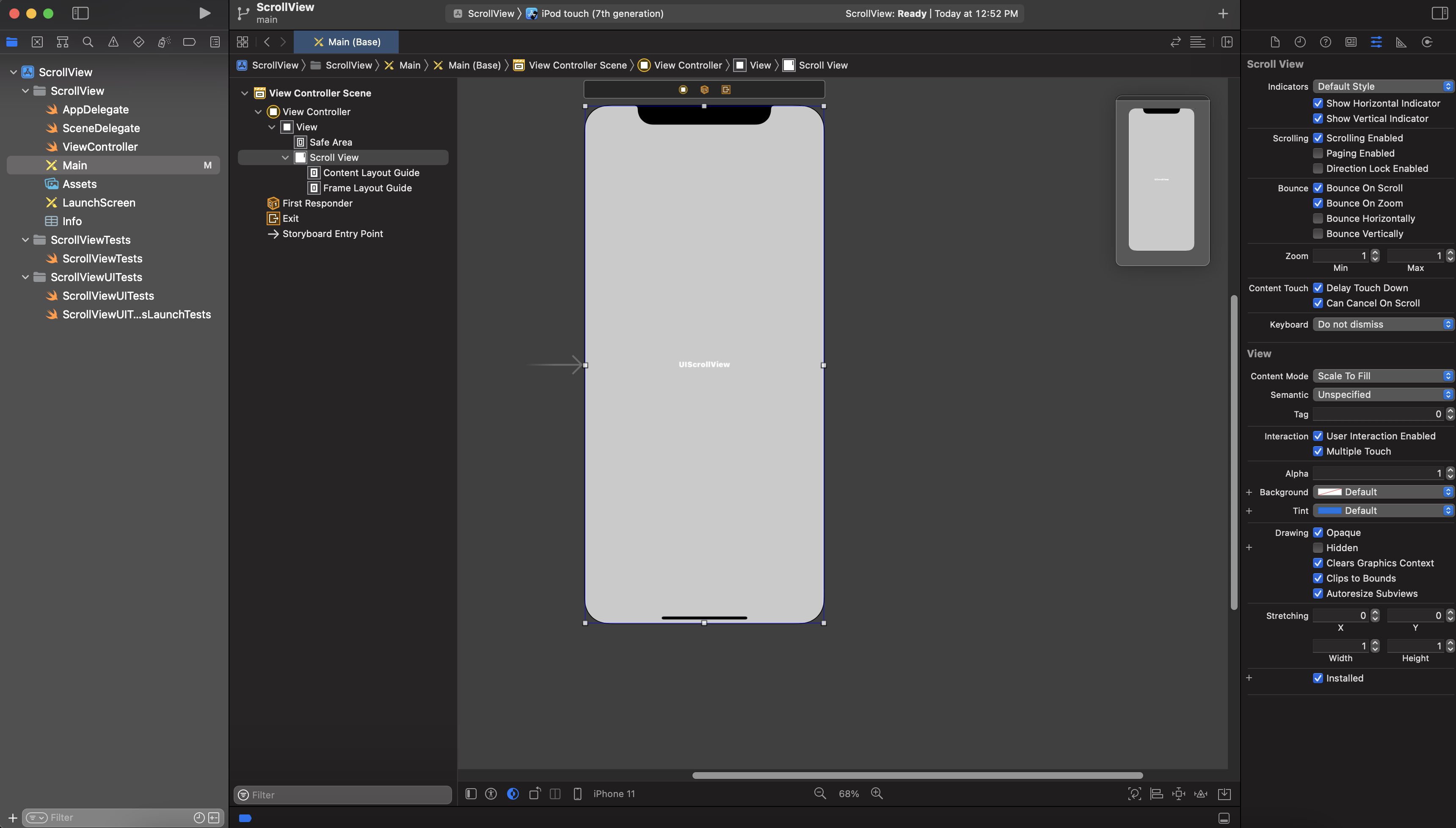 12. 그럼 이렇게 스크롤뷰 화면이 생성되었습니다.