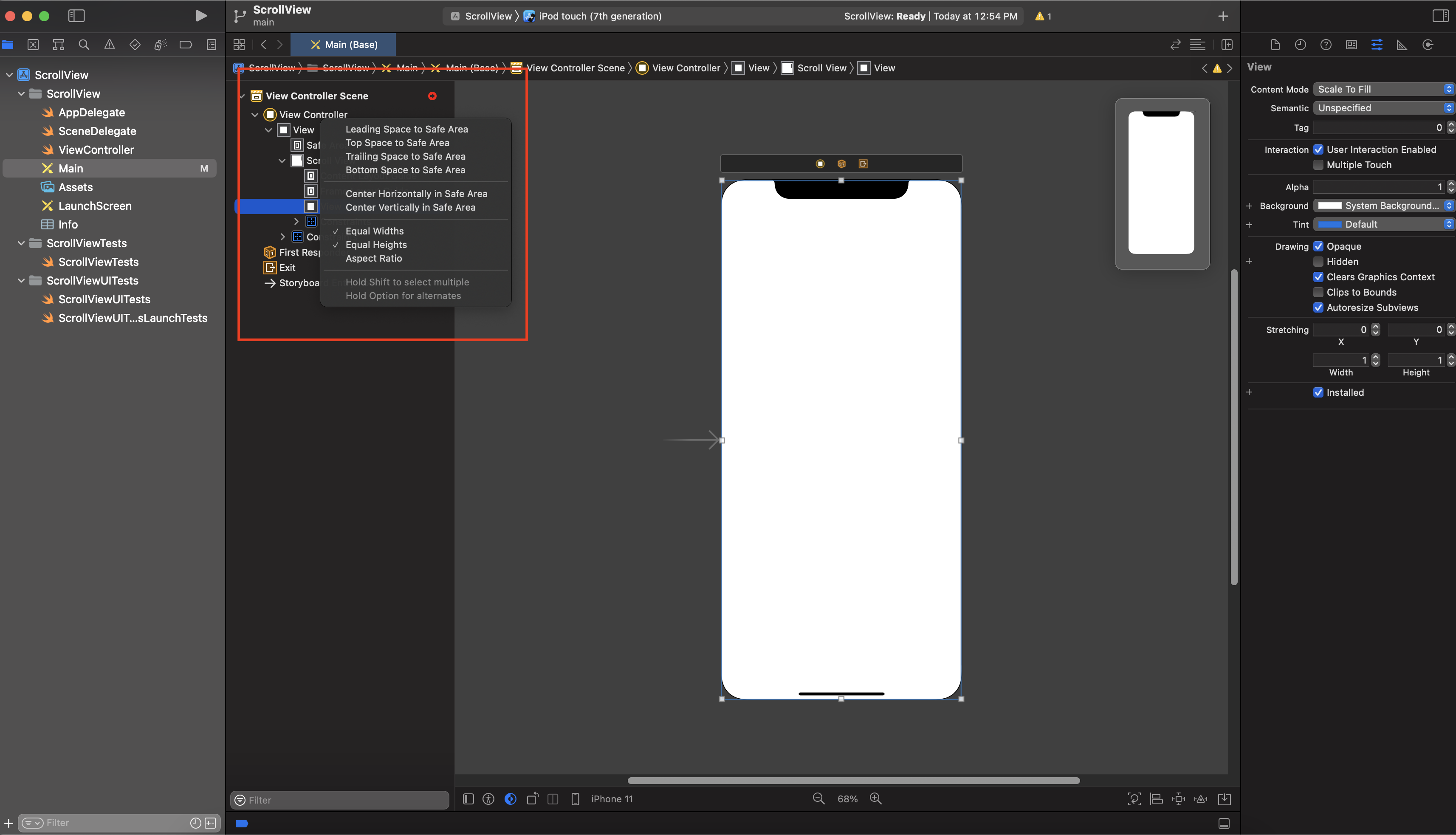 6. 생성한 view는 ScrollView와 크기를 맞춰주세요.