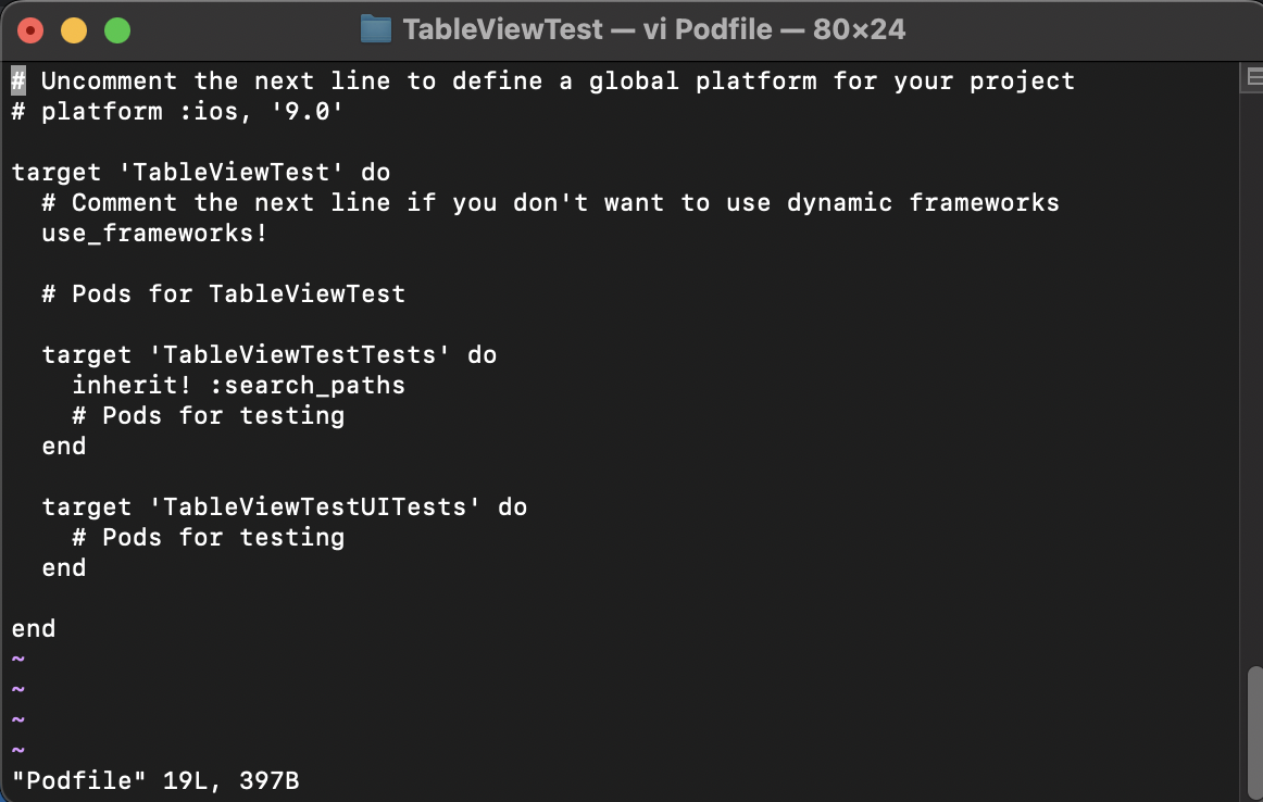 그럼 아래와 같이 Podfile이 생성됩니다.