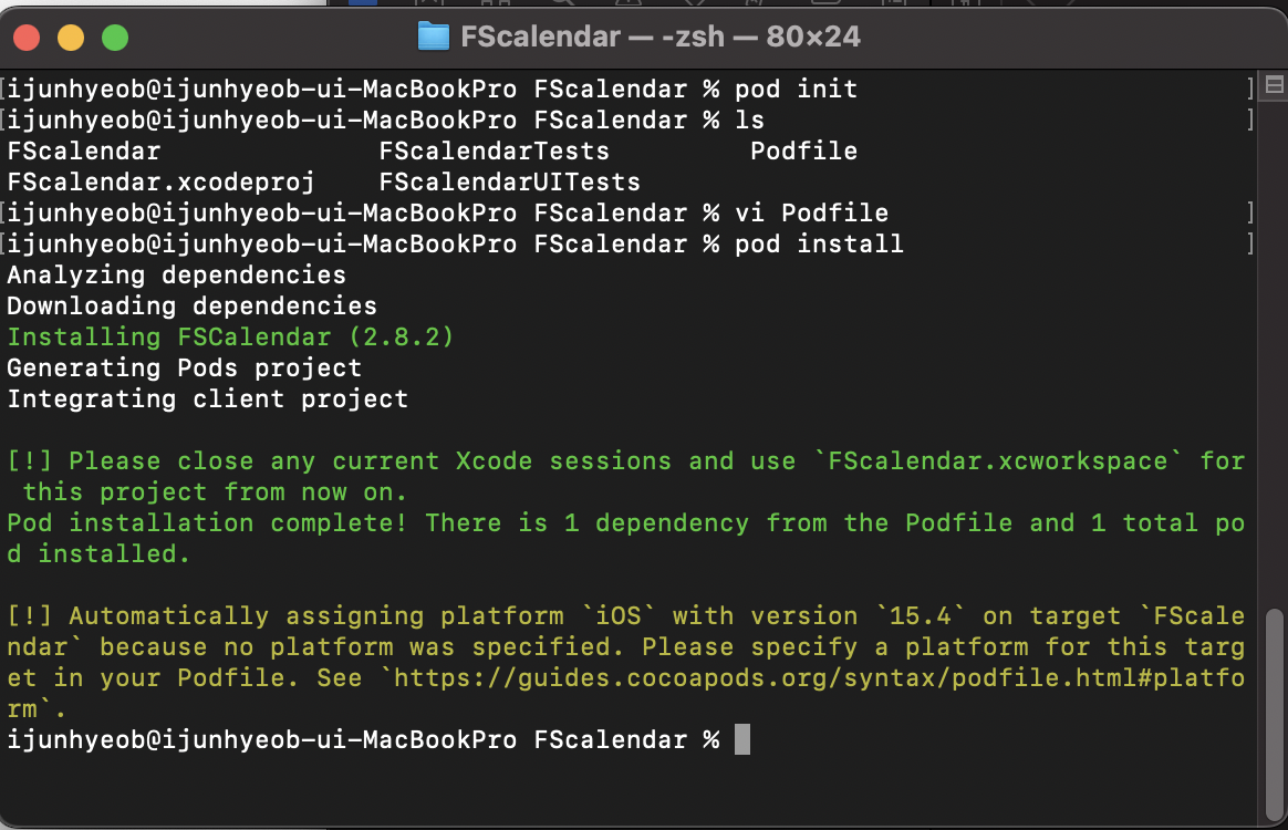 아래 pod 'FSCalendar' 를 입력해주세요.