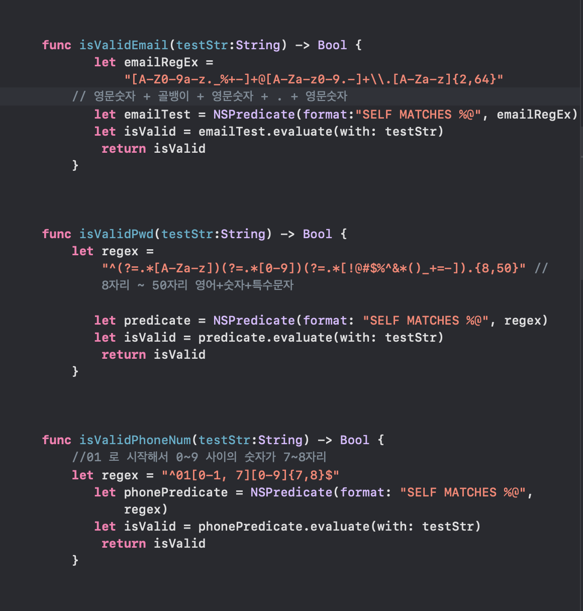 (ios/Swift) 비밀번호, 이메일, 전화번호 유효성 검사 본문